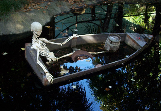 The ride’s name is well represented on the soundstage since the front and sides have sculpted rocks and a skull rock. Originally, waterfalls on the front portion were used but they were turned off after a few years. Smoke/Fog also came out of the skull’s eyes as well for a short time.