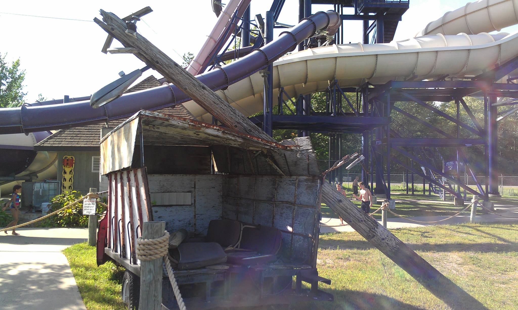 If a tornado hits, there will be damage, right? The park themed the surroundings of the attraction with broken down vehicles and destroyed light poles.