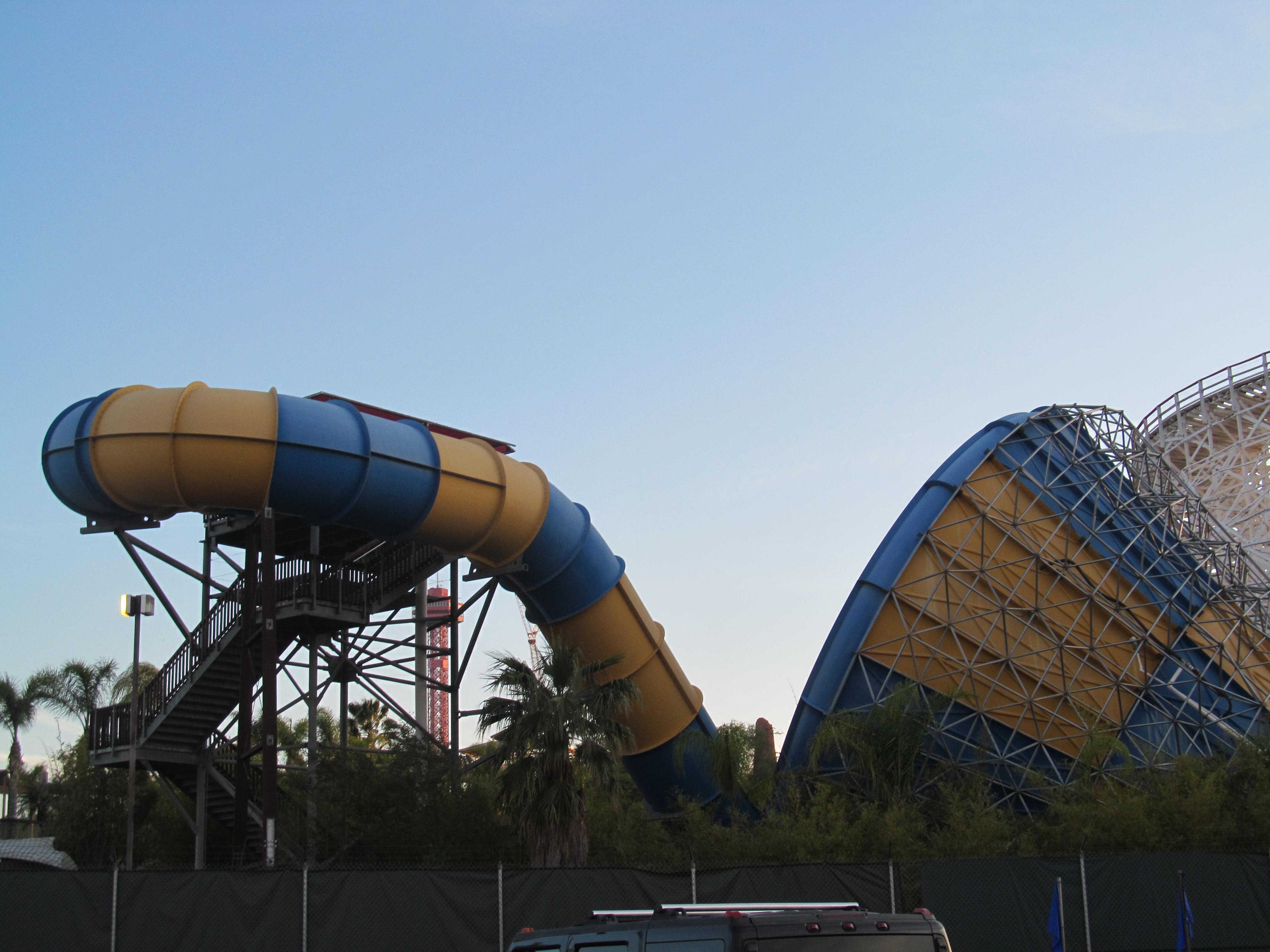 In this picture shot from a nearby slide tower, you can see the Tornade.