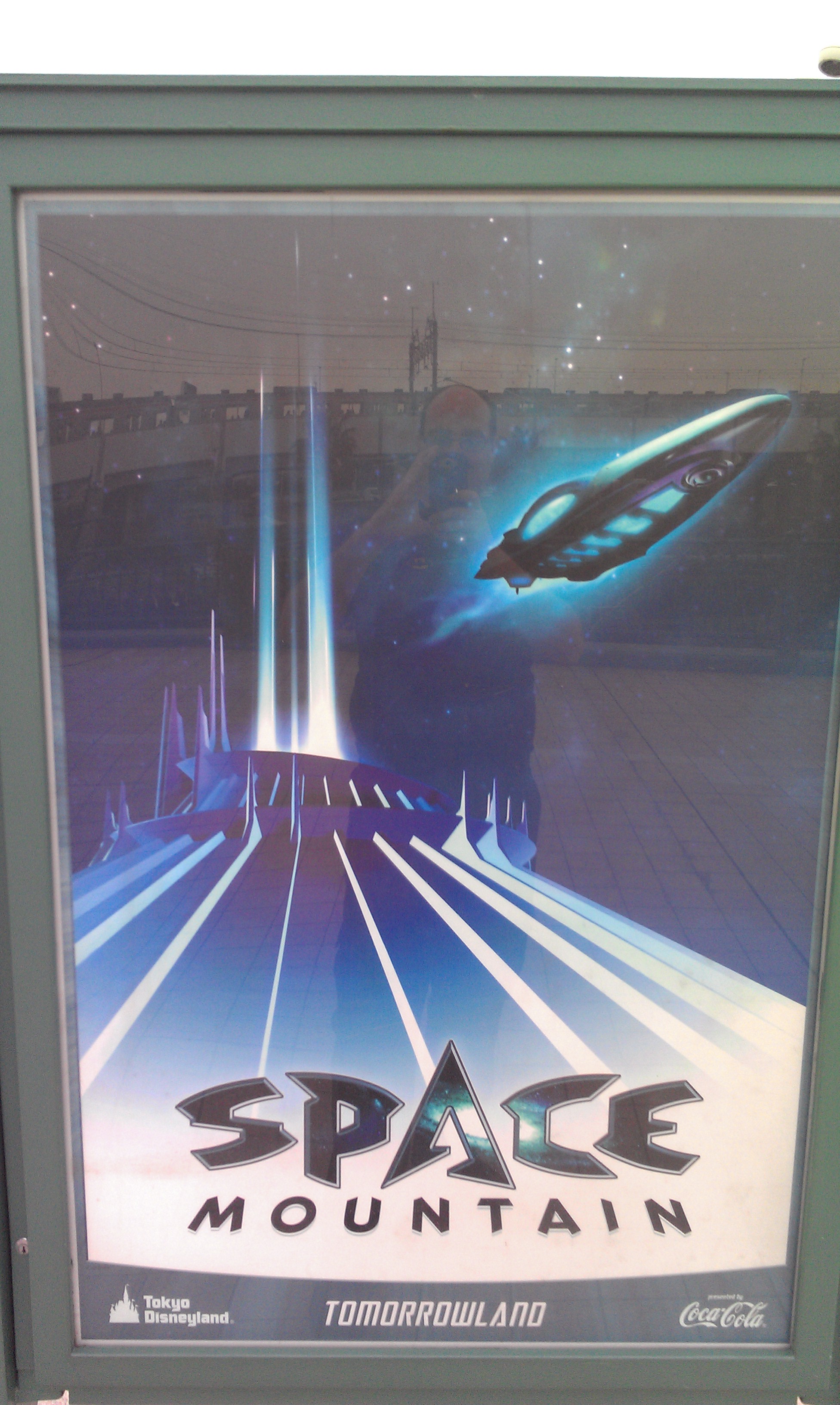 Tokyo Disneyland opened its doors to the public on April 15th, 1983. The one roller coaster present at opening was a clone of Space Mountain at Disneyland. Now, the major difference at the time was the gift of space. Unlike the Anaheim space port, the Japanese space station was designed into the park at opening and thus, it occupy center stage in Tomorrowland. A large plaza in front of it and a strategic design down the main path leading from the park hub into Tomorrowland make it one of the most strategic draw ever. Now, the outdoor waiting line is in front of the ride and a Goodyear SpeedRamp take riders to the upper level where another small waiting line await them. Small rooms were constructed and they show a promotional video from Coca-Coca, who sponsors the ride. Once inside, there was a dark switchback where windows allowed us to peek at the rockets as they were flying in space. The station and ride experience was like the Anaheim attraction.