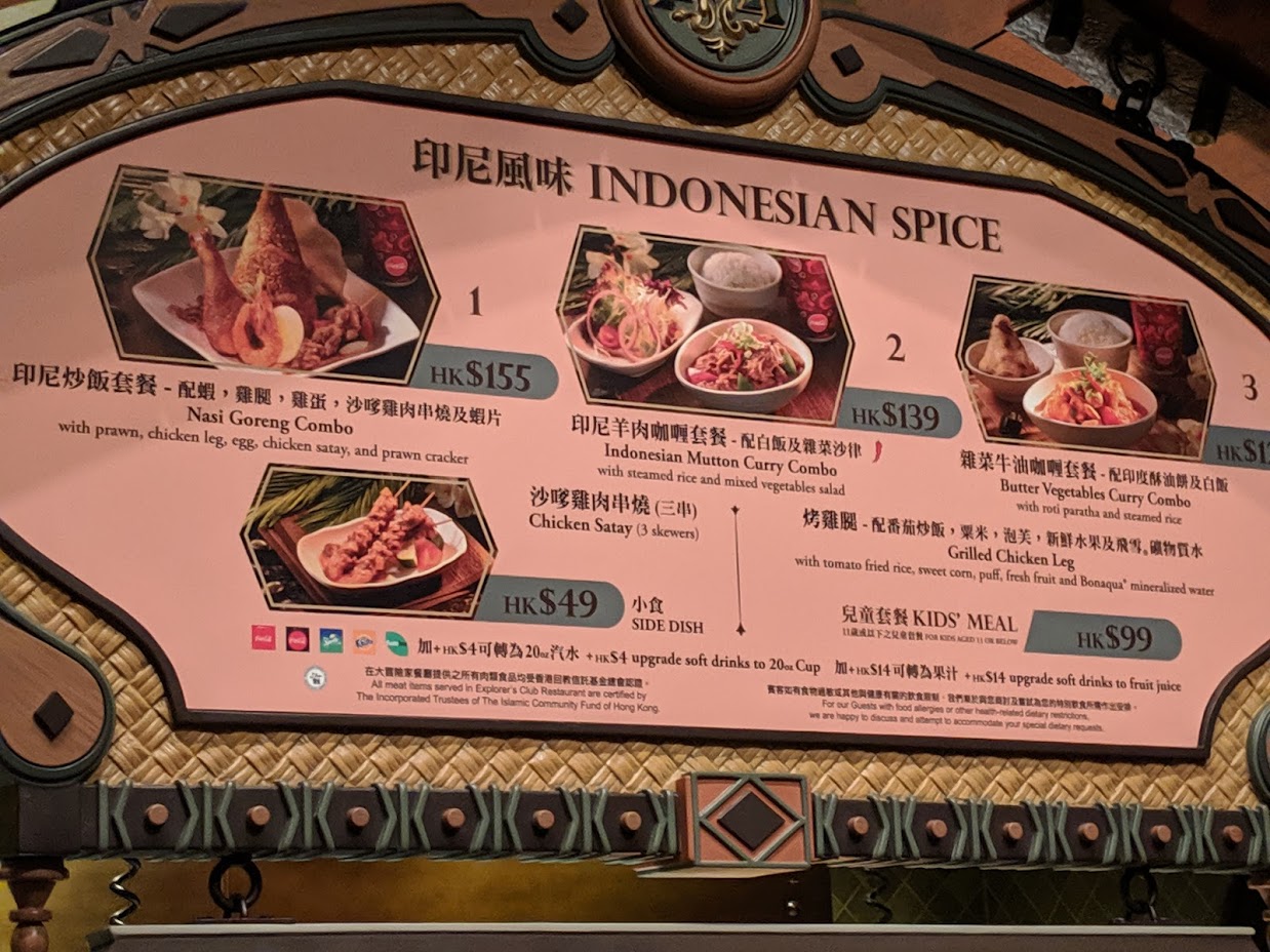 Explorer Club Halal Menu Published June 3, 2019 at 1238 × 928 in Halal Food at Hong Kong Disneyland ← Previous Next → Indonesian menu as of May 2019.