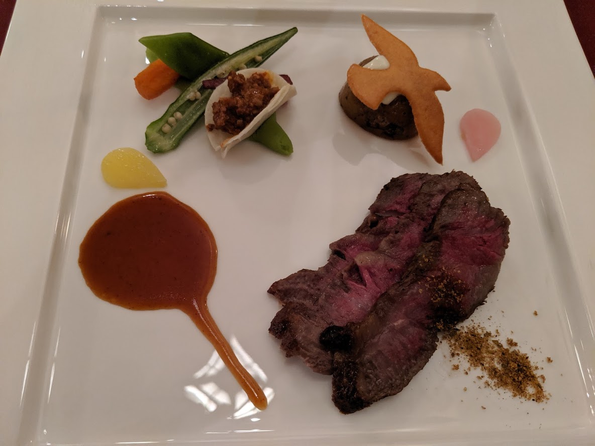 Magellan’s Kuroge A5 japanese beef main course themed Soaring Menu Published August 6, 2019 at 1184 × 888 in Soaring Fantastic Flight: Part 3 of our look at the Soarin’ attractions at Disney ← Previous Next → Kuroge A5 Wagyu Beef with a mini Taco