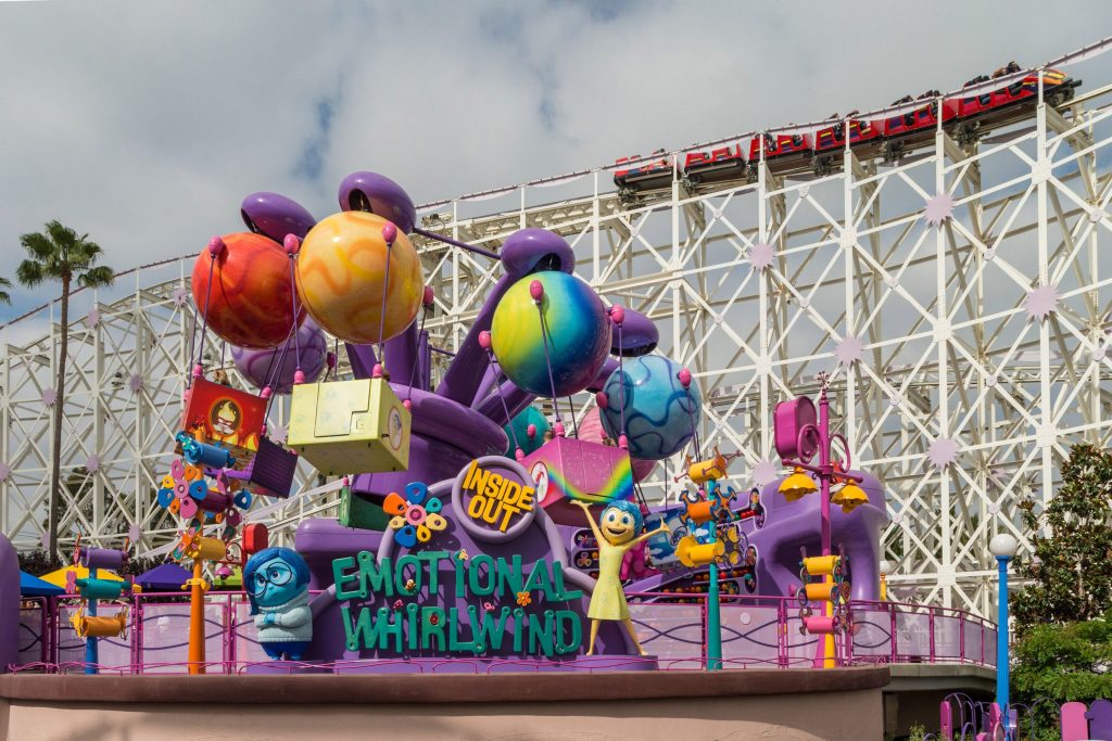 In 2017, Disney announced that most of Paradise Pier was to be transformed into the new Pixar Pier for the summer of 2018. The carousel got new figures and a new name to Jessie’s Critter Carousel (2019) and the Sun Wheel, renamed to Mickey’s Fun Wheel in 2011, received a new name change and retheming to Pixar’s Pal-A-Round. Maliboomer was to finally get a replacement in the form of a rethemed Zamperla Balloon Race coming from the closed Flik’s Fun Fair across the park. Now known as Inside Out Emotional Whirlwind, the ride reopened in 2019.
