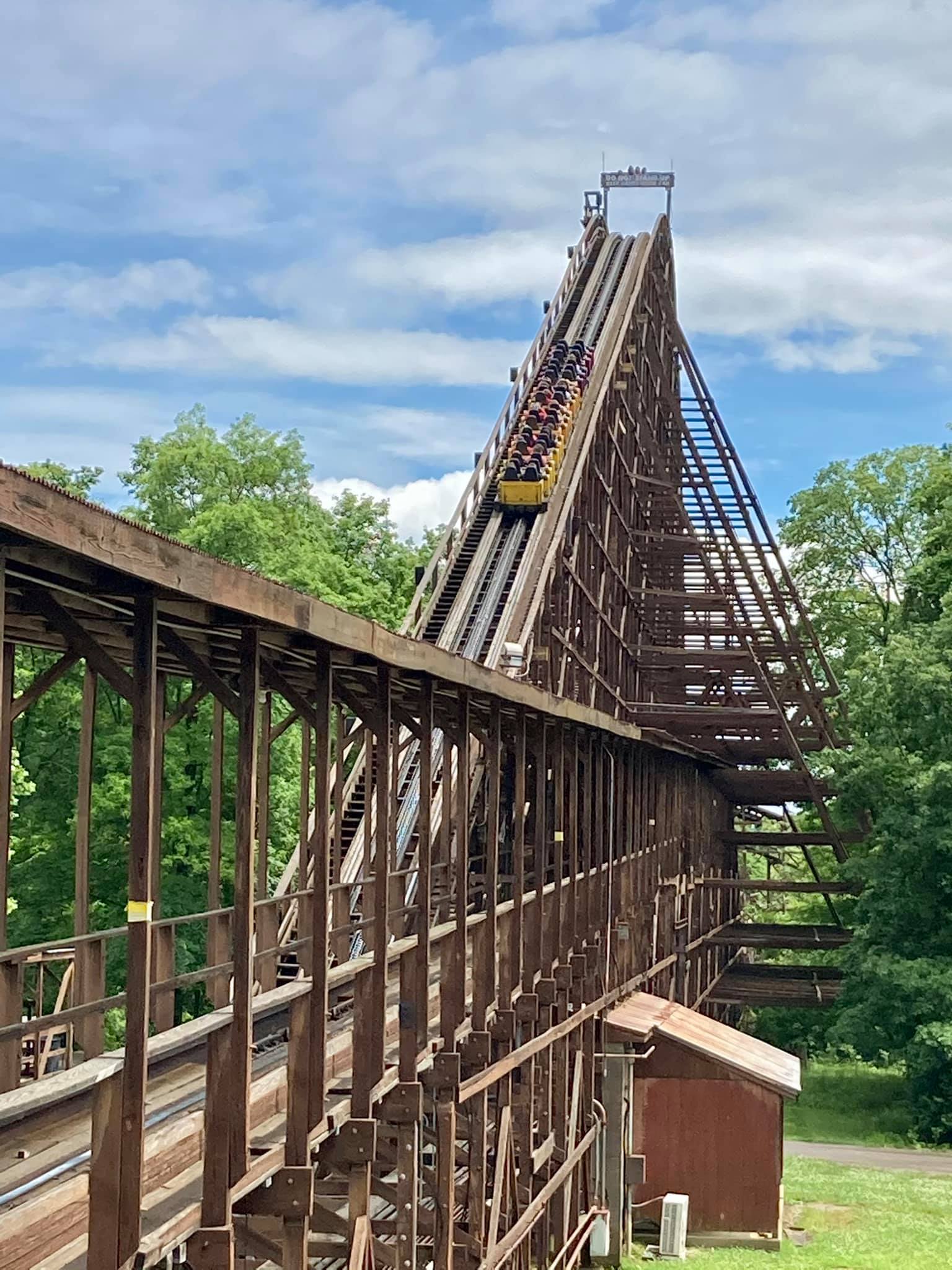 The signature attraction of Paradise Pier is the most visible: California Screamin’. Every seaside amusement park featured a wooden roller coaster. Still, this was not feasible in a Disney theme park with its high utilisation and year-round schedule: wooden roller coasters require specialised maintenance with frequent track repairs. WDI looked at an alternative: masquerading a steel roller coaster as a wooden coaster. This would also help with an aspect that Disneyland ran into with the park’s location: it is much closer to residential areas than Disneyland, so noise management was needed, and then, wooden coasters all ran steel wheels on steel tracks and featured noisy lift hills.