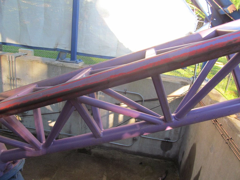 For the most part, the ride uses Intamin two-tube track, mounted on a complex structure of steel pieces, originally painted white. That structure, fabricated locally in California by Valley Iron Fabricators-Erectors, a long-time Disney supplier, replicates a classic wooden roller coaster appearance. The vertical loop and middle section with airtime hills are an exception, utilizing Intamin three-tube triangular track that they premiered in 1997 on Lineal Gale at Korakuen Park/Tokyo Dome City in Tokyo, Japan.