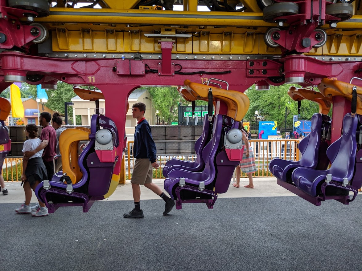 While some looping roller coasters at the time used lap bars, Disney preferred to use the Intamin shoulder bar. That was to accommodate more riders’ shape, faster loading, and a more secure feeling for passengers. As the ride is possibly the smoothest looping coaster globally, they are not a factor in riders’ comfort and still allow guests 48″ and up to ride.