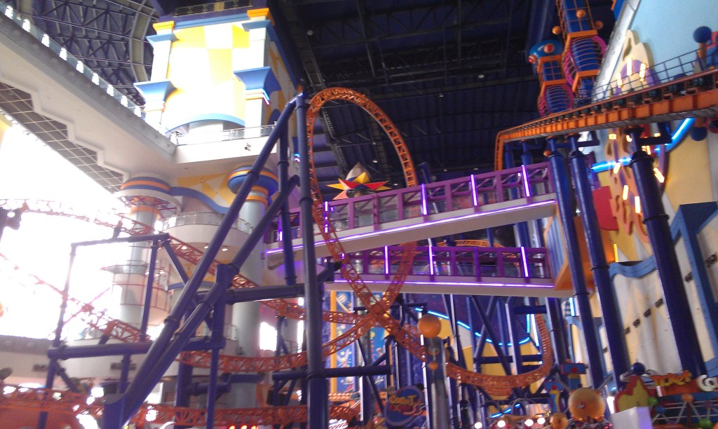 The attraction went to tender and Intamin won the contract, using its track system, they debuted in 1993 on Indiana Jones et le Temple du Peril at Disneyland Paris. Previously, Temple du Peril and Lethal Weapon Pursuit (Warner Brothers Movie World Germany, opening in 1996) used short two-car trains, Monte Makaya opened in 1998 at the defunct Terra Encantada theme park in Rio de Janeiro, Brazil. Monte Makaya used a more traditional-looking fiberglass shell for the cars in a seven-car configuration, throwing its riders around eight times with a massive loop to start the chaos.