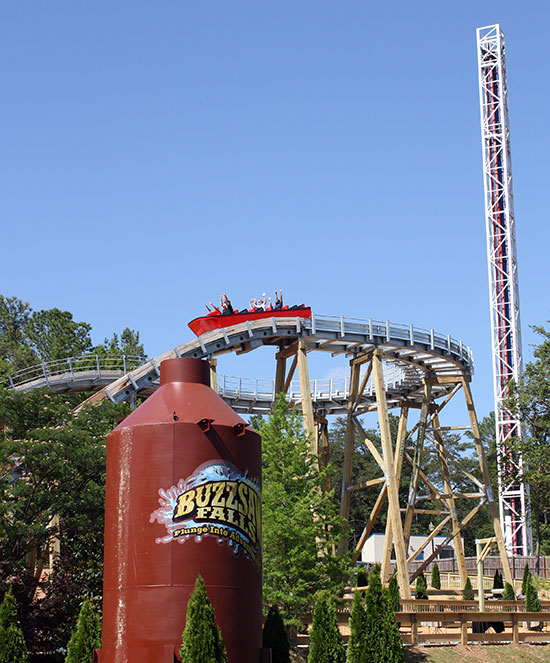 Canada’s Wonderland provided this picture of Timberwolf Falls. https://www.canadaswonderland.com/