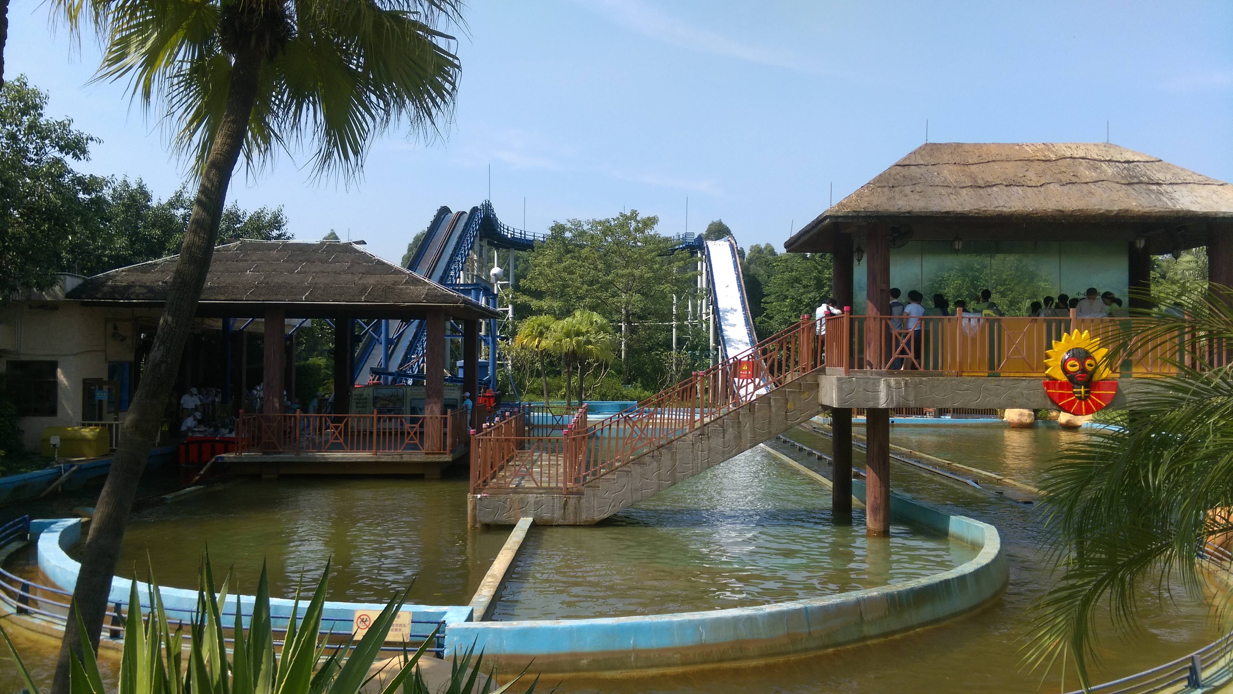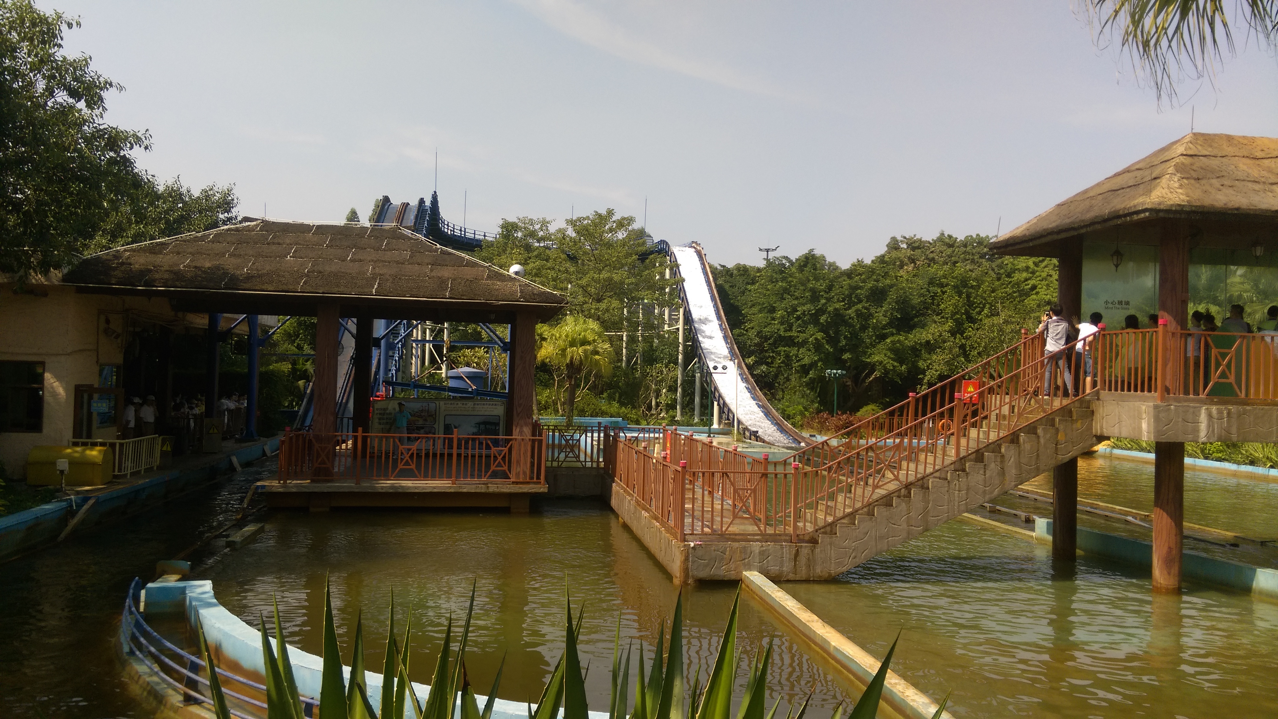 Chimelong Paradise (Guangzhou, China) features two Golden Horse water rides: a Shoot the Chute and a River Rapids. The River Rapids will be presented in a further article and their Shoot the Chute is a Golden Horse JL-15B due to its 15 meters (49 feet) drop height. It has a fairly standard layout and has two boats.