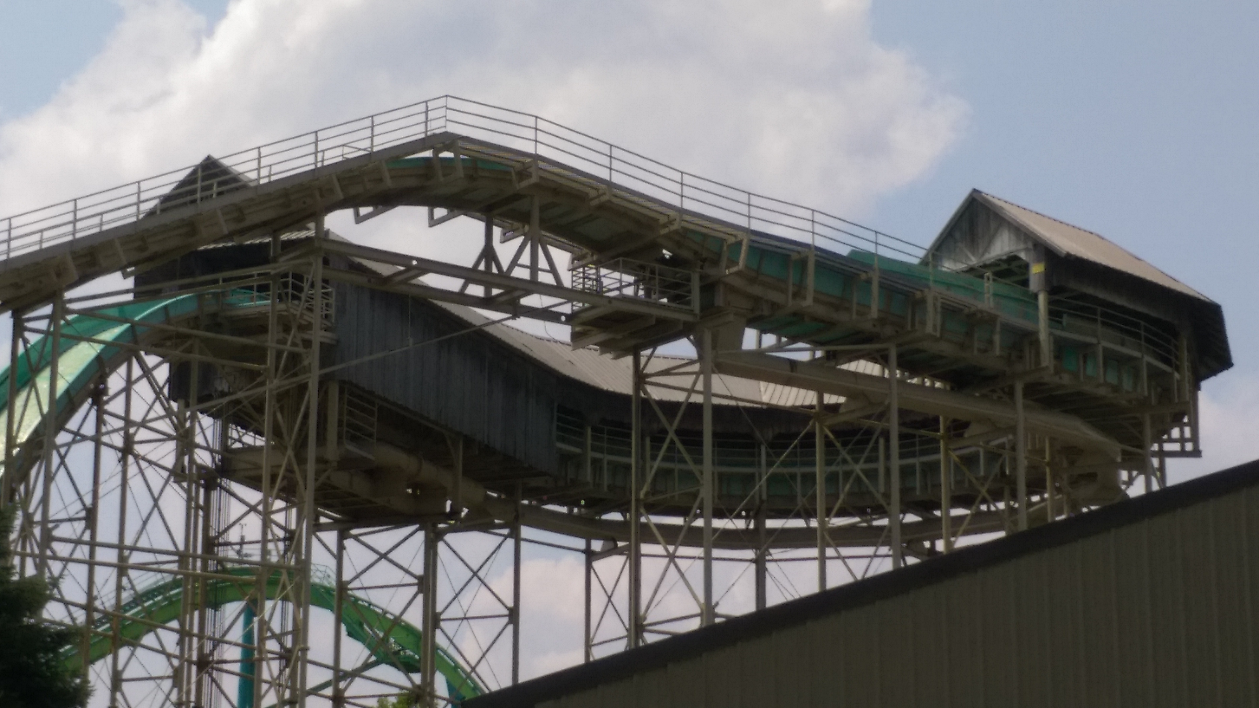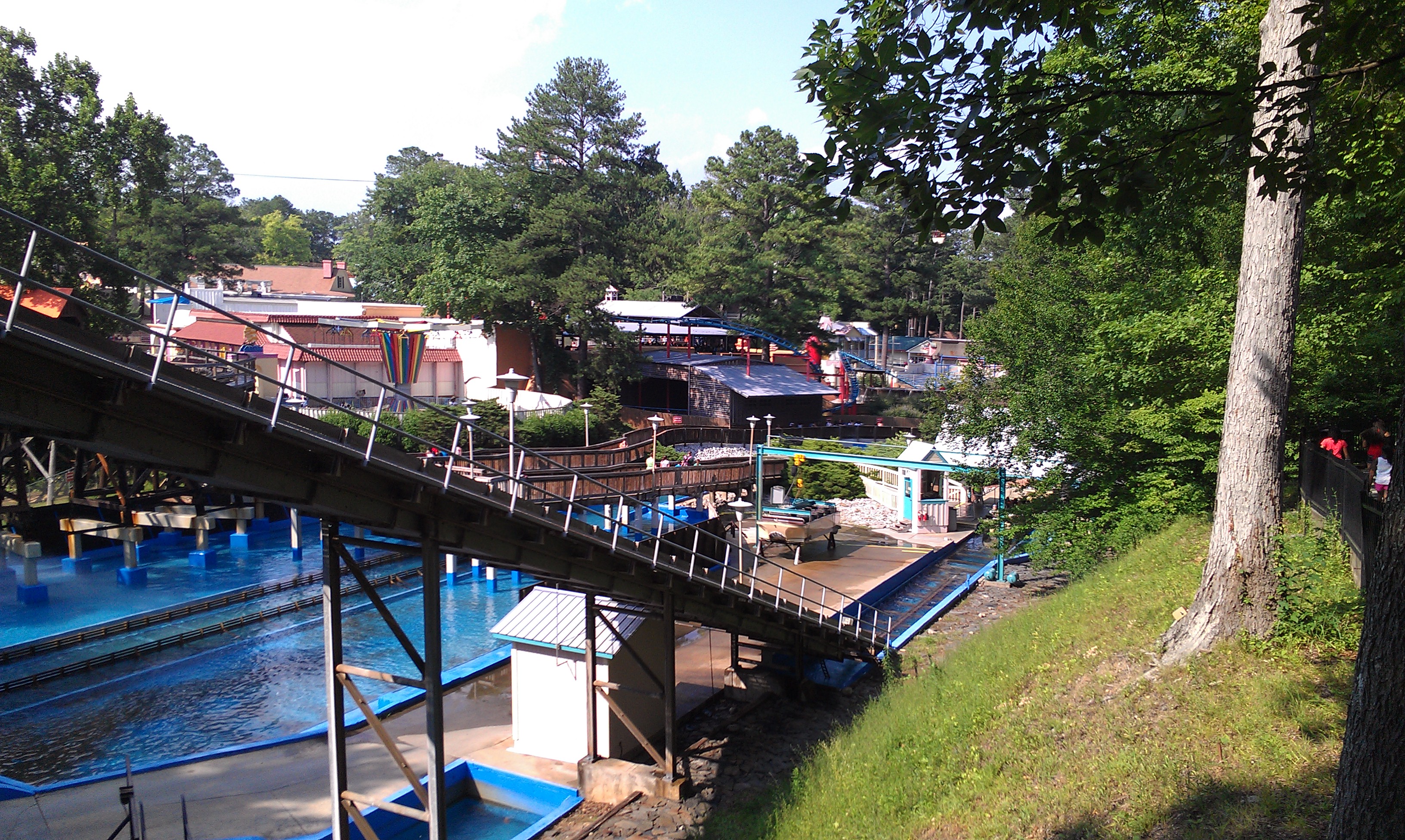 Cedar Fair at the time themed and enclosed the top of the attraction. Arrow and Vekoma were the only ones to free float the boats in the elevated sections in all their Shoot the Chutes.