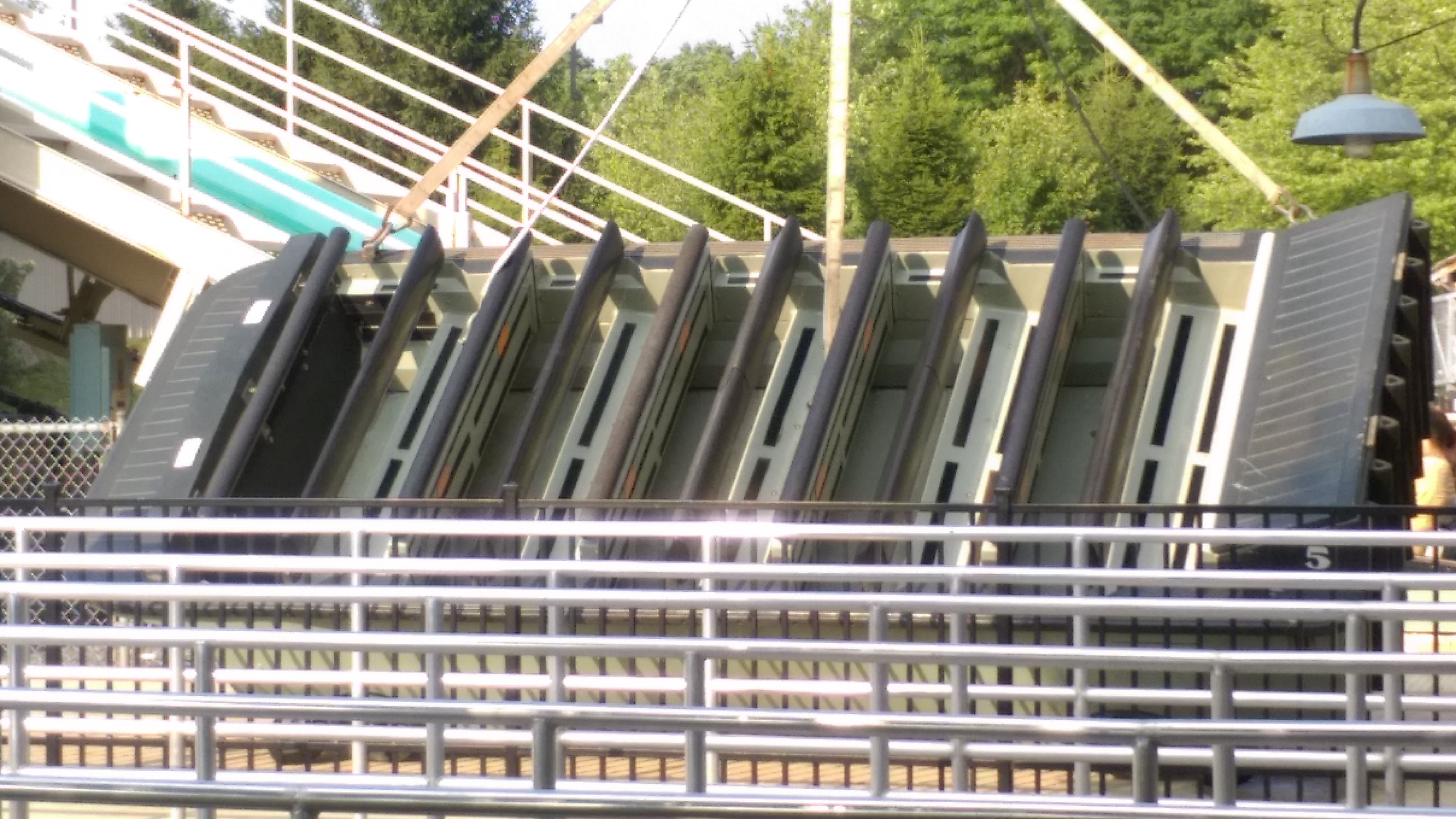 The second boat of the attraction. The chain dog is on the right on the bottom and the double anti roll backs on the left from our vantage point.