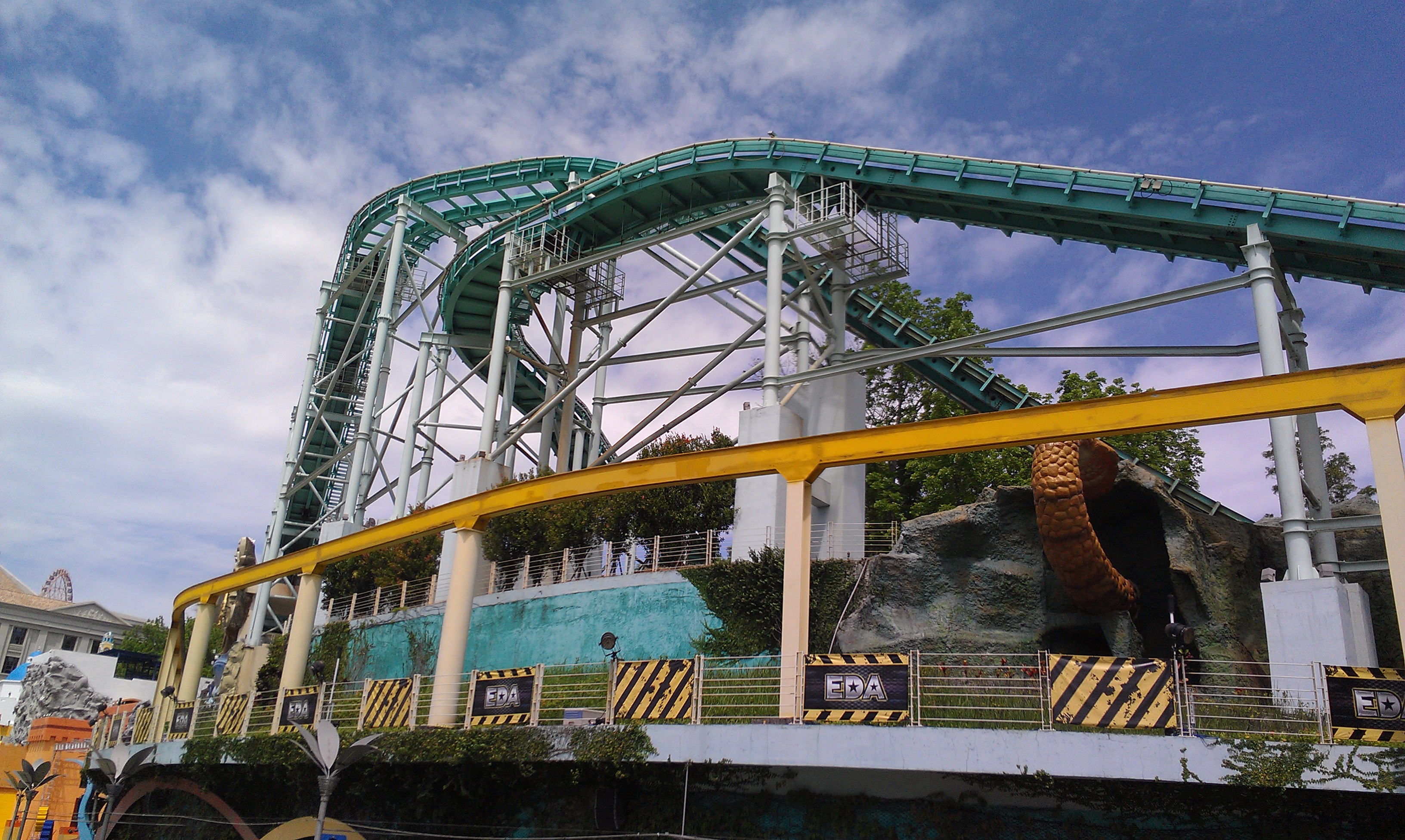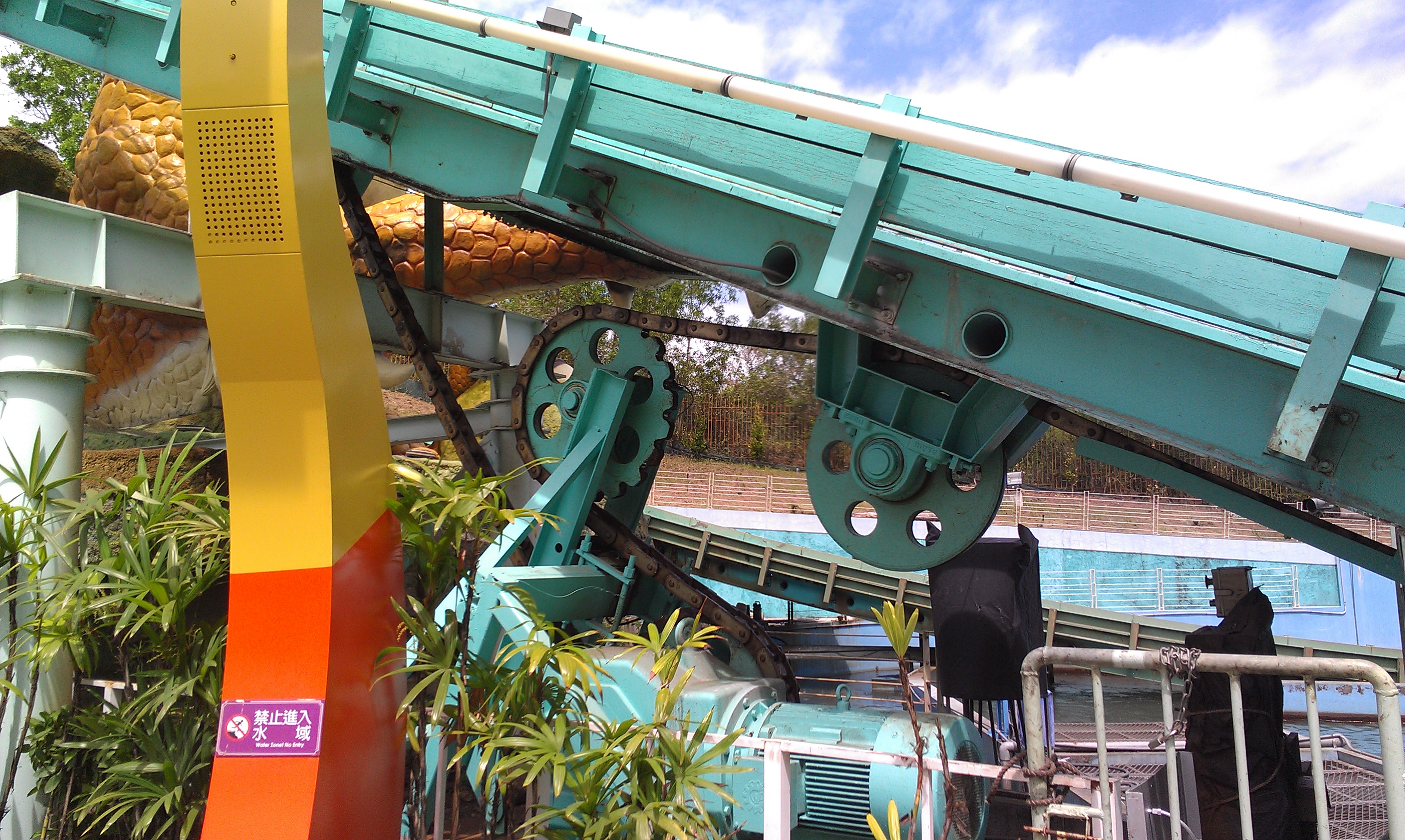 This is Flume Ride at EDA Theme Park in Kaohsiung, Taiwan. It features two lift hills and a 31 meters drop at the end. It is a JL-30B Chute Rides.