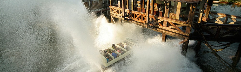 In 1989, Busch Gardens Tampa (Tampa, FL) transformed the African Queen boat ride into the Tanganyika Tidal Wave. It retained most of the scenery of the previous Jungle Cruise like experience and then added a large 55 feet tall elevated trough at the end. It then leads to the double down drop that creates a powerful wave.