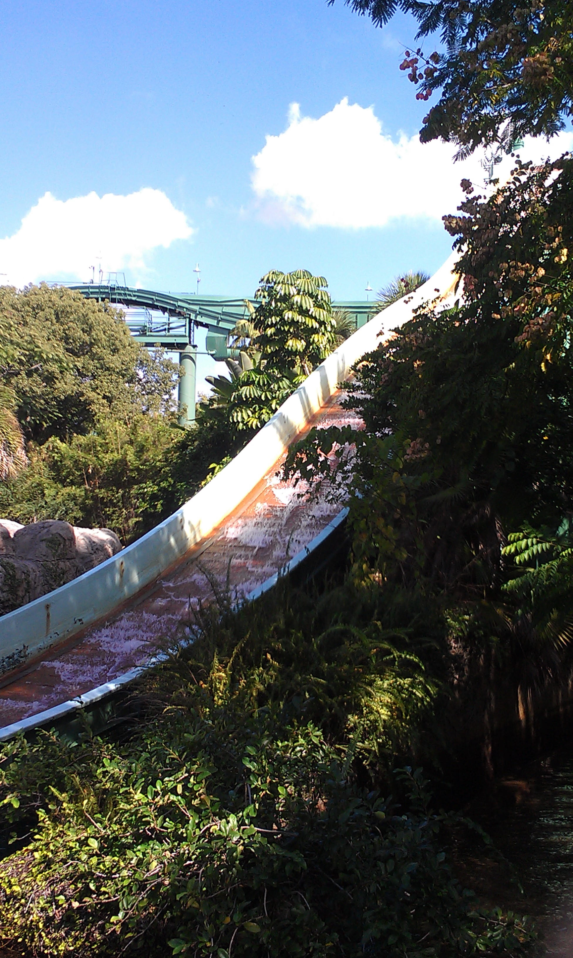 The following pictures show the Tanganyika Tidal Wave at Busch Gardens Tampa (Tampa, FL). Notice how high the fiberglass walls are on the trough compared to the models.