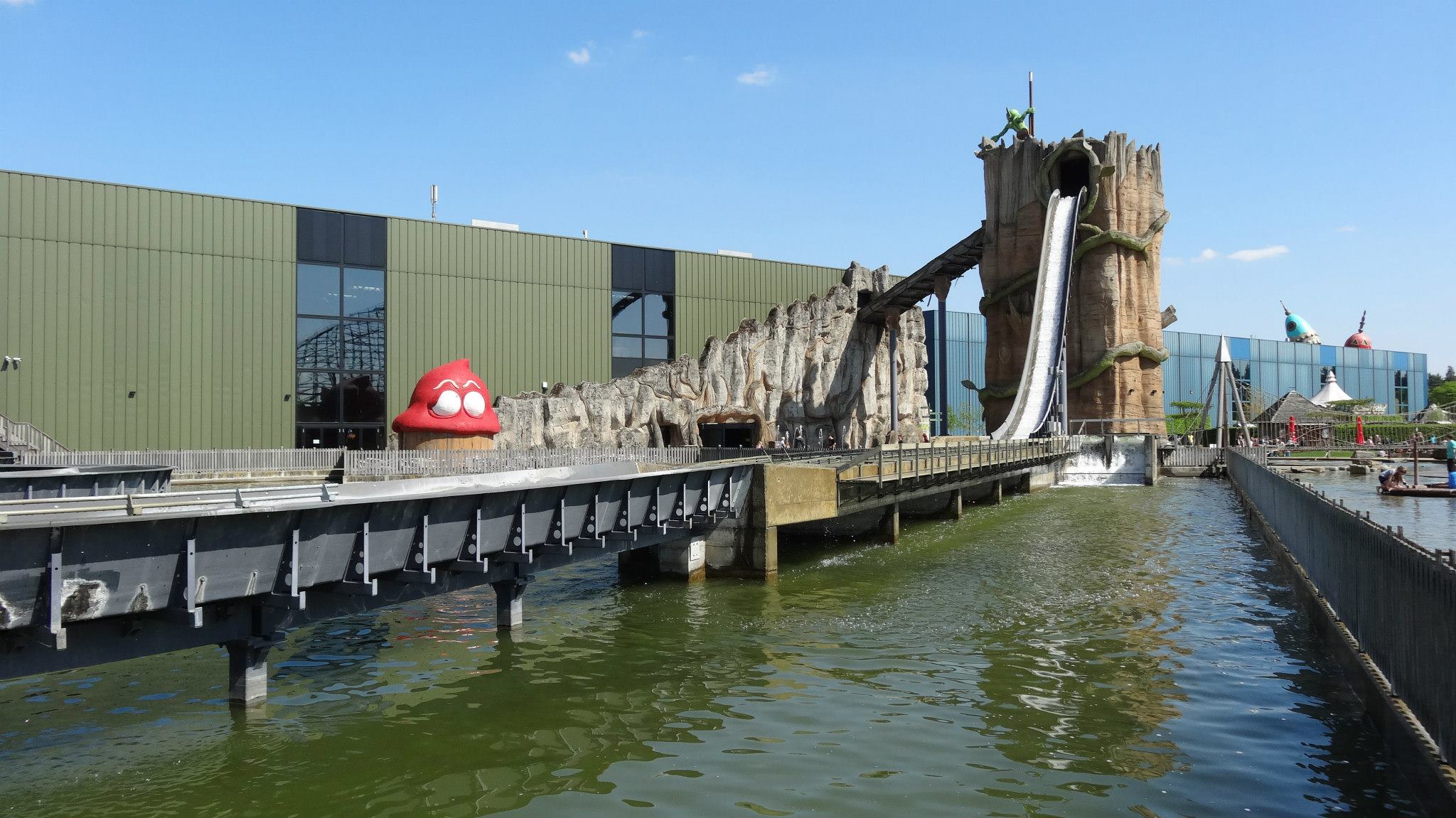 In 2014, Holiday Park is now owned by Studio 100. They are a cartoon company from Belgium and the decision was made to remove the devil theme from the park’s log flume. The outside buildings were redressed and figures from the Wickie the Viking cartoon added. The two indoor scenes were preserved, but the fire and devils removed. Neverland Themepark Projects realized this project and the ride was renamed Wickie Splash.