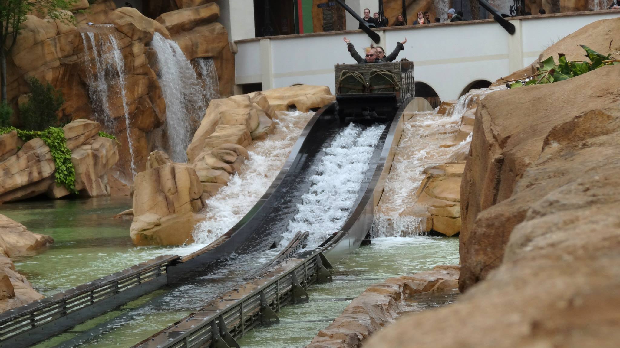 You can see the two drops among the themed structure of Mighty Mountain Flume Adventure, Leofoo Village (Guanxi Township, Taiwan).