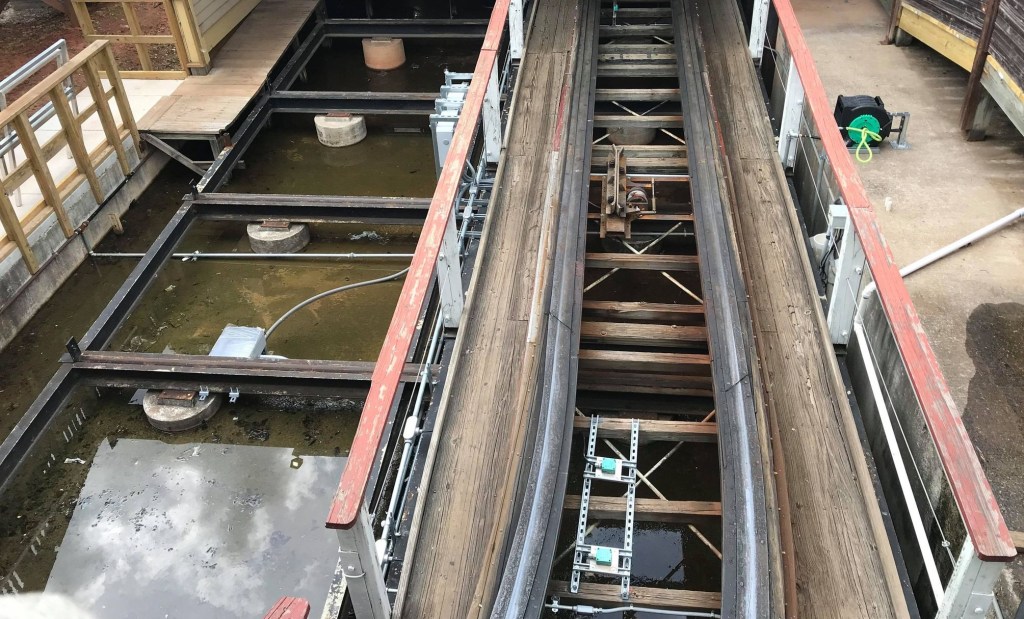 The ride steel structure was disassembled and moved to its new home. The brakes, chain trough, and trains also made the move. It was rebuilt according to John Pierce’s plans, and the ride was unique in its construction and style.