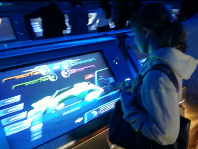 The briefing room area was stripped down and turned into two rooms, now referred to as the Chevrolet Design Studio at Epcot. Guests use computers with touchscreens to design fantasy vehicles that were optimized for off-road, wind drag, fuel efficiency, and other factors. They then uploaded their designs to use either provided cards or their magic band (RFID wristbands used for park admission, hotel room access, Fast Pass Plus, payment, and other applications)