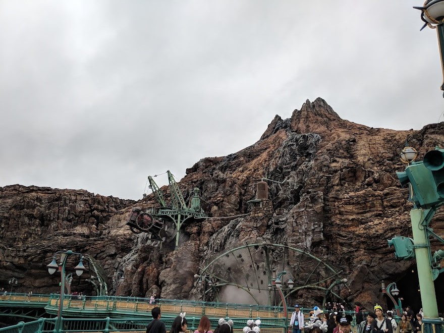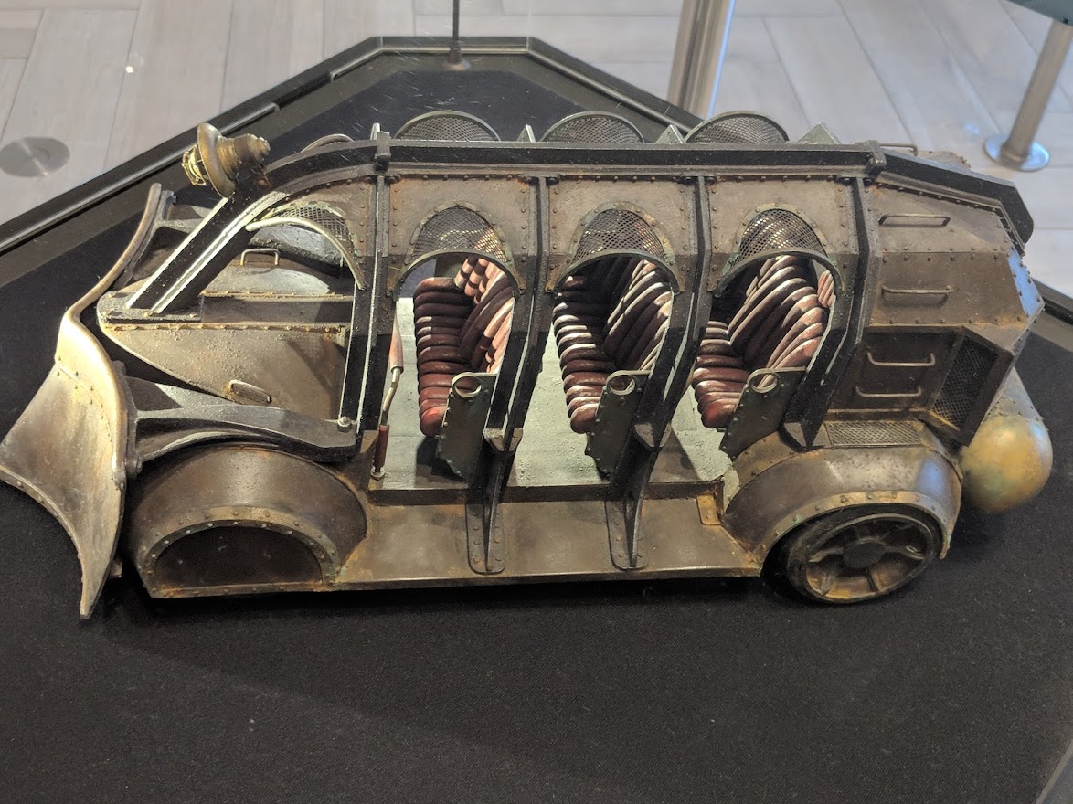 Journey ride vehicles are a complete departure from Test Track and Racers’ low and sleek cars; much taller, narrower, and longer. As a result, thanks to the added vertical space, they could move away from the solid wall small diameter wheels to go to massive truck-sized tires. Those are much better at taking the extreme loads the attraction finale would place on it: a 50+ feet tall drop at a steep angle out of Mt. Prometheus. The deep mining vehicles reach 40 mph and give riders a second of negative-g along the crest and intense positive g-forces at the bottom. Due to the more intense forces and higher rider position, Journey has a 46” minimal height restriction for riders and uses a solid lap bar per row to restrain riders. Passengers sit two across in 3 rows. Both Test Track and Racers load four cars at once in the station, but Journey has three loading positions at load and unload guests at another platform before.