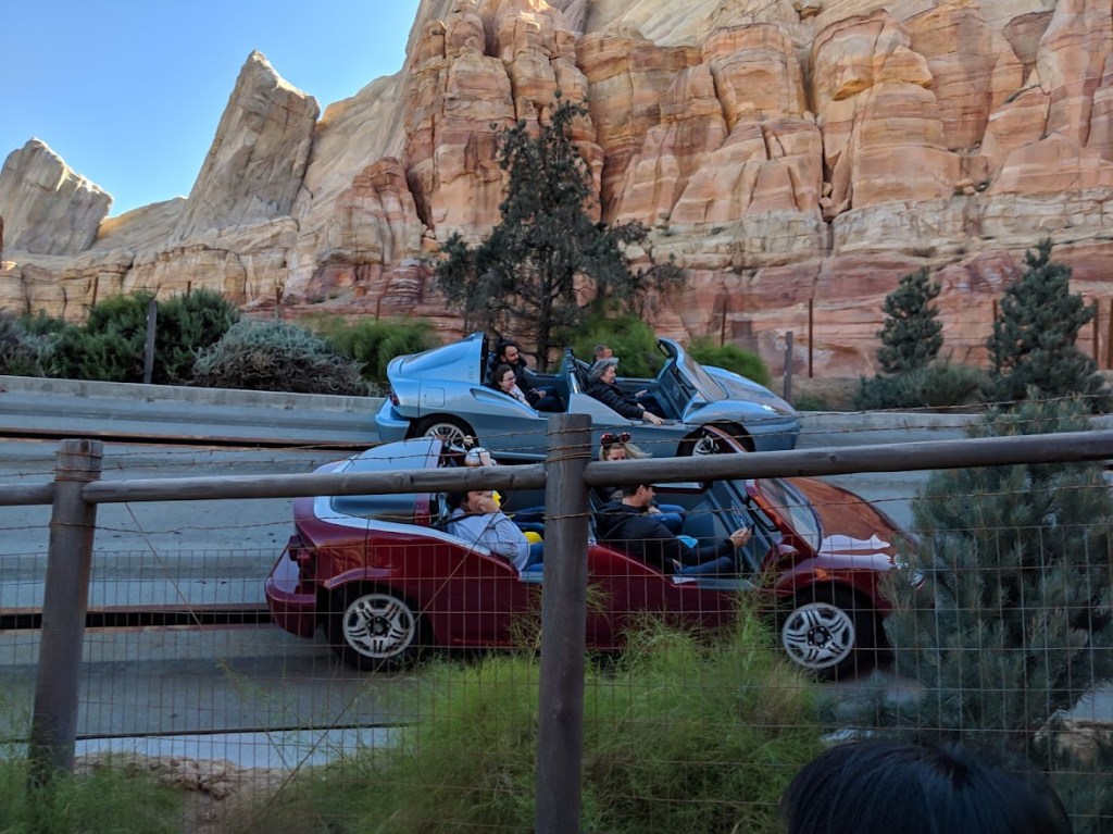 Radiator Springs Racers solved a lot of the issues by reducing the maximum speed of the vehicles from 65 mph (Test Track) to 40 mph (Radiator Springs Racers), further reduced during testing to 30-35 mph. Even with the reduced speed, the high-speed section is still exciting, with more turns and dips along with its profile than on Test Track.