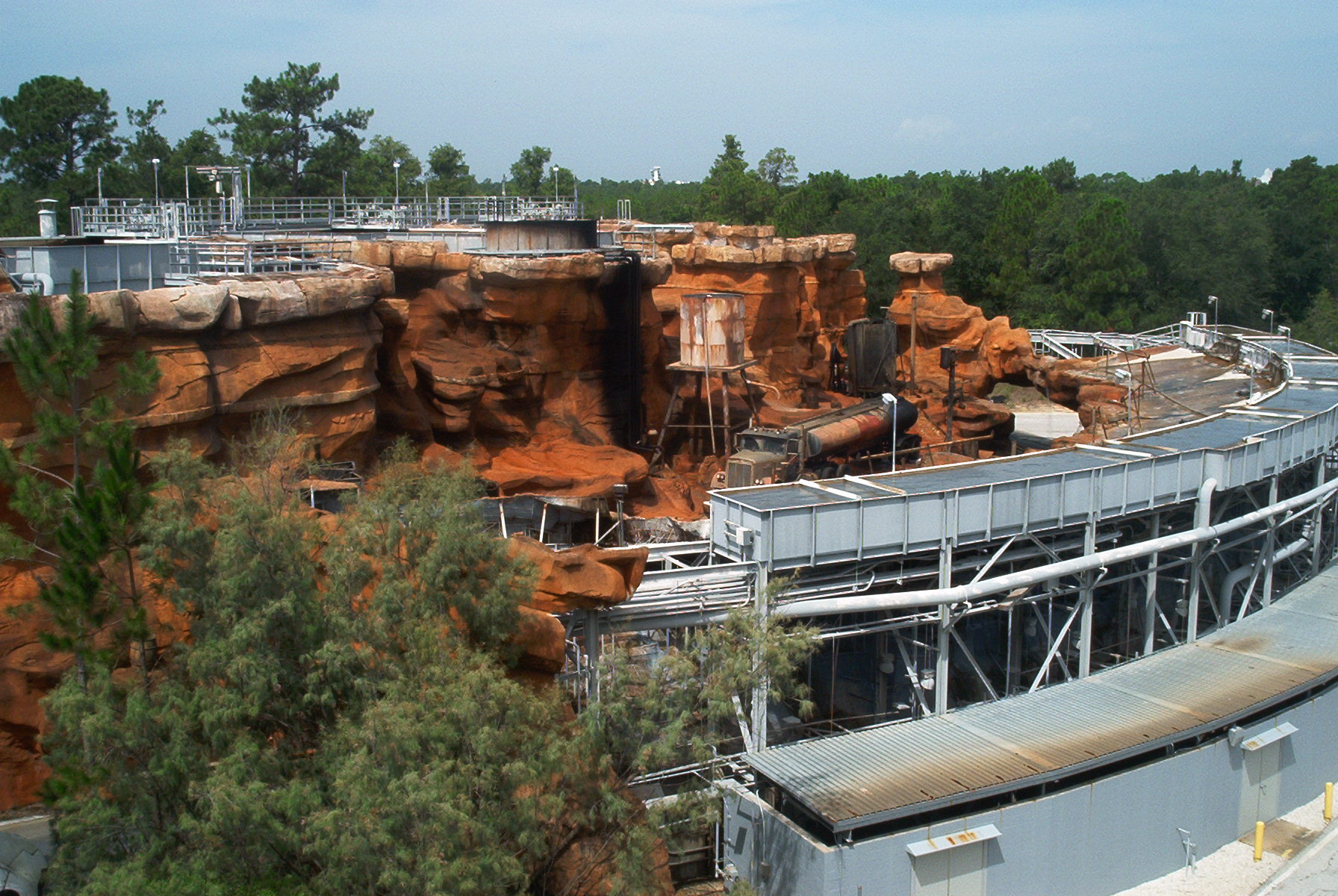 Catastrophe Canyon seen from above. The show has just reset in this picture and we can see the full tanks of water.