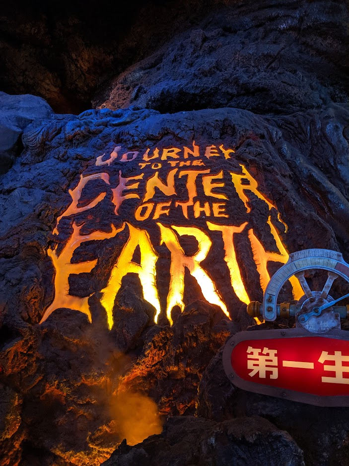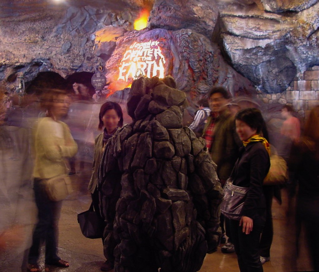 The other attraction is the park’s headliner and signature ride. Journey to the Center of the Earth was initially though to be a freefall attraction, placed inside a volcano structure when Disneyland Paris was planning Discovery Mountain as a massive indoor area. When Discovery Mountain plans were revised to be more practical and to reflect the Paris resort’s financial challenges, the freefall attraction was not kept. When it came time for Tokyo DisneySea, Journey to the Center of the Earth idea of venturing into the earth core transformed into a massive ground breaking dark ride, placed inside the most unusual show building, Mt. Prometheus itself.