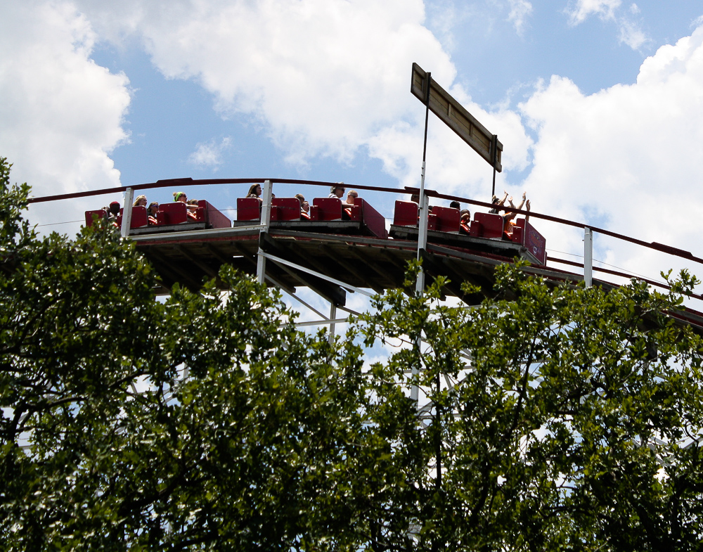 During an off-season tour, the park initially announced that the new train would be from Rocky Mountain Construction (RMC). However, this was a diversion, and a brand new red train was purchased from PTC by Six Flags. This new train debuted on May 30th, 2021 and features yellow pedals in front of each car to make manual restraint release easier. In addition, the transfer track area was renovated, making it a more comfortable space for the maintenance staff to work in and shielding the second train from the elements. last, additional Cincinnati brakes were installed before the station and in the station proper to stop the trains more accurately.